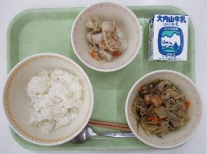 2025年10月16日 / 最終更新日時 : 2025年10月16日 編集者 給食 10月16日の給食 今日の献立は、「ご飯・牛乳・いかの更紗揚げ・きのこのあえもの・けんちょう(里芋と豆腐の煮物)」です。更紗揚げ(さらさあげ)は、カレー粉やしょうゆなどで下味を付け、片栗粉をまぶして揚げた料理です。見た目がインドの「更紗」という染め物に似ていることから名付けられました。「けんちょう」は、山口県の家庭でよくつくられる精進料理です。しっかりとした味付けで、ごはんのおかずにぴったりの献立です。