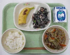 今日の献立は、「ご飯・牛乳・鶏すき・ひじきとチーズのサラダ・バナナ」です。鶏肉のすき焼きは、福岡県の郷土料理です。福岡県では旬の野菜をたっぷり使い、お祭りや親せきが集まった時などに食べられるそうです。サラダは、あらかじめひじきをしょうゆなどの調味料で煮込み味をしっかりつけておきます。それを今日は、人参+小松菜+ツナとあえました。カッテージチーズが全体をまとめてくれました。バナナは、疲労回復、便秘解消、美容効果が期待できる栄養豊富な果物です。