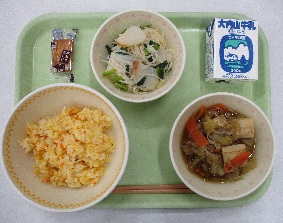 学校給食週間三日目の今日の献立は、「ご飯・牛乳・みそ焼きうどん・れんこんの辛子マヨあえ・ヨーグルト」です。味噌焼きうどんとは、うどんを肉や野菜と一緒に鉄板で炒め、赤味噌ベースの甘辛い特製味噌ダレで味付けした、三重県亀山市発祥のご当地B級グルメで、濃厚な味噌の香りと味が食欲をそそり、ご飯にも合うボリューム満点の料理です。三重県では現在、多気郡明和町を中心に「三重れんこん」のブランド化・産地化に向けた栽培が進められています。シャキシャキとした食感と白く綺麗な品質が特徴です。牛乳と同じく大内山酪農さんの商品である「大内山ヨーグルト」は、酸味がおだやかで、とても食べやすいヨーグルトです。
