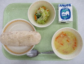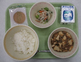 今日の献立は、「ご飯・牛乳・マーボー豆腐・大根サラダ・ななくりせんべい」です。マーボー豆腐は、高等部3年C組からのリクエストです。赤みそだけではなく、甜面醤や豆板醬を使って味にコクをつけました。ご飯にのせて丼にして食べました。榊原町の「ななくりせんべい」は、ほんのり甘く、カリカリ食感でした。よっぽど美味しかったのか、高等部の生徒が「すごく美味しかったよ!また食べたいです。」と言いに来てくれました。