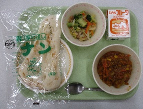 今日の献立は、「ご飯・牛乳・鮭の南部焼き・コールスロー風サラダ・きんぴらごぼう」です。南部焼きは、白ゴマと黒ゴマを合わせて下味を付けた魚にかけてオーブンで焼きました。香ばしさとプチプチ食感がおいしかったです。ごぼうは、腸内で有害物質を吸着して、便とともに体外に排出する働きをもっています。今日はじっくり炒めて調理したため、ごぼうが柔らかく、食べやすかったです。