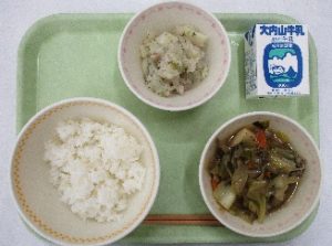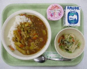 今日の献立は、「ポークカレーライス・牛乳・春キャベツの福神和え・お祝いゼリー」です。令和8年度の給食が始まりました。やっぱり初日は大好きなカレーです。小学部と中学部はそれぞれの教室で食べます。高等部は全部のクラスが食堂に入って食べます。各クラスの給食当番さんが盛り付け配膳をがんばってくれていました。今年度も安心、安全の美味しい給食作りを頑張ります。