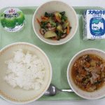 2025年10月14日 / 最終更新日時 : 2025年10月14日 編集者 給食 10月14日の給食 今日の献立は、「セルフ豚キムチ丼(ご飯+豚キムチ)・牛乳・さつまいものごまあえ・青りんごゼリー」です。豚肉と白菜キムチなどを炒めた具をご飯にのせて食べました。具だけで食べるとピリッと辛さを感じましたが、ご飯と混ぜるとマイ […]