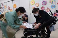 分校体育館にて草の実分校とあすなろ分校と合同で着任式、始業式を行いました。三重病院5病棟でも病棟ホールや部屋ごとに実施しました。校長からは「それぞれチャレンジすることを見つけて頑張りましょう」という話がありました。また、分校ホール、5病棟ホールそれぞれの会場で入学式を挙行しました。校長から一人ひとりに「おめでとう」と声をかけてもらうと、うれしそうな表情で応えてくれました。これから充実した学校生活を送ることができるよう、教職員一丸となって支援していきます。どうぞよろしくお願いいたします。 | |