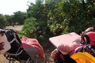 みかん狩りへ行ってきました。「美味しそうなみかんはどれかなぁ」綺麗なオレンジ色に育ったみかんを絞っていただきました。甘いみかんと酸っぱいみかんを食べ比べた子もいました。とんぼを見ながら、栗やどんぐりが落ちている道を通って秋の景色も満喫してきました。 | |