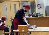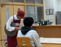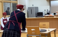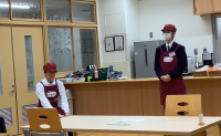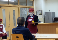 株式会社グリーンズ様より審査員を招いて、「接客サービス技能検定」が実施されました。生徒たちは、日ごろの練習成果を出せるか緊張している様子でしたが、落ち着いて受けることができました。審査員の方からは、「動きが丁寧で良かった。」「緊張の中自分をコントロールして、頑張った。」「アイコンタクトや決まったセリフ以外の返事も出来ていた。」など、たくさんの誉め言葉をいただきました。審査員からの評価を受け、