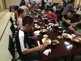 1日目の夕食です。みんなモリモリ食べてます。