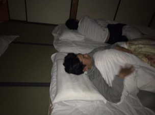 順番にお風呂に入ります。温泉で露天風呂もあって、いい湯だな〜