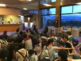 よし乃亭のロビーで入館式。3日間よろしくお願いします。