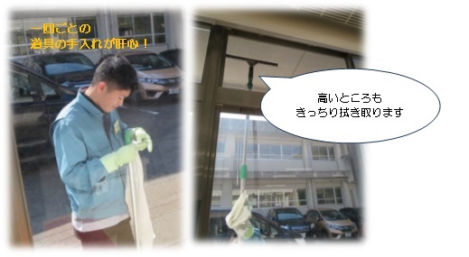 高等部作業学習では「環境サービス斑」が毎年この時期、学校中の窓ふき清掃に取り組んでくれて