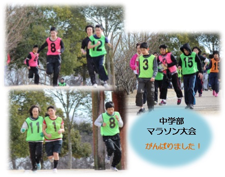 2月2日は中学部のマラソン大会でした。雪もちらつき、本当に寒い日でしたが、体育やグループの時間に練習してきた成果をみんなで競いました。1kmと2kmの2つのコースに分かれて走りました。