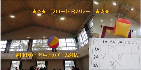 11月29日、12月1日は笹川中学校の1年生が来校し、本校の中学部と交流学習を行いました。体育館に集合し、「フロートRバレー」をチーム対抗で行いました。ふわふわの大きいボールはわかりやすく、笹中の生徒たちもにじ学園の生徒たちも楽しむことができました。ペアの生徒同士和やかな交流が生まれていました。