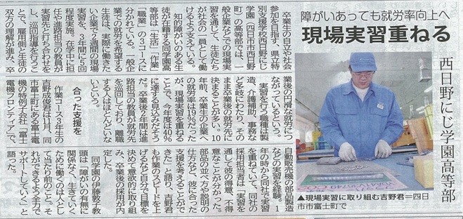 四日市市内で無料配布されている「タウン情報Youよっかいち」Vol.126 12月号に、本校高等部における就労に向けての現場実習の様子が紹介されました。