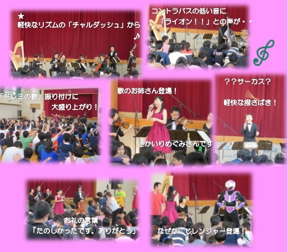 21日(金)は東京アーティスツ合奏団をお招きして、本校体育館でクラシックコンサートがありました。クラシックといっても、各楽器をわかりやすく紹介していただいたり、歌のお姉さんとともに歌ったり踊ったりして、堅苦しくなく全身で音楽を楽しむひとときとなりました。