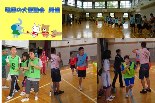 パン食いリレー、綱引き、フォークダンス(マイムマイム)と、懐かしの種目で、みんなムキになって競い合い、楽しみました。