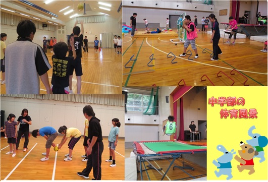 毎週木曜日午後、中学部は学年縦割りで2つのグループに分かれて体育に取り組んでいます。