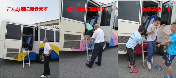 添乗員さんや運転手さんたちの、非常口開閉手順の確認にもなりました。