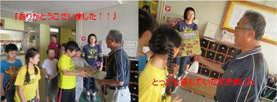 小学部の代表の子どもたちが手作りの手紙を渡し、「ありがとう」「おいしかったです!」などなど口々にうれしい気持ちを伝えました。