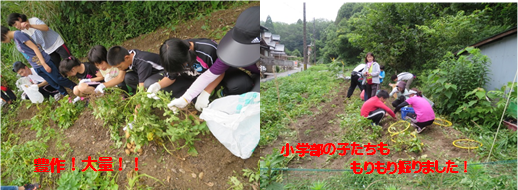 大きなジャガイモが出てくると大興奮!次々拾って袋やかごに入れていました。