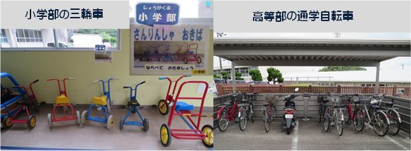 4月以降、高等部の通学自転車は台数が増え、小学部の三輪車は愛用者が増えました。