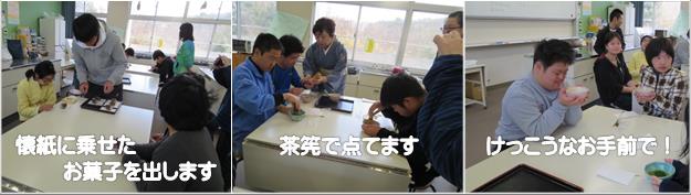 窯業班からいただいた茶碗を活用して、茶道体験をしました。茶道の先生をお招きして