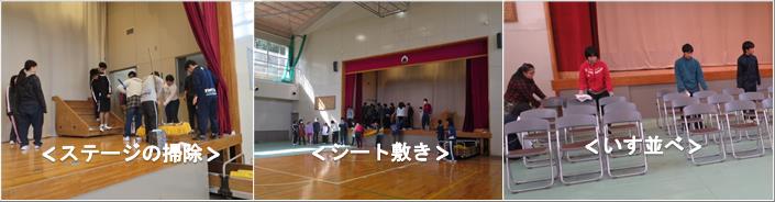 2月29日から卒業式の練習が始まります。2月26日に在校生たちの手で式場設営を行いました。シートを敷き、いすを並べました。卒業する先輩たちへの感謝の気持ちを新たにしました。
