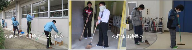 これに加えて3学期は、作業学習グループの環境サービス斑が日頃のトレーニングや検定の成果を活かして学校中の窓ふきをしてくれています。本当にぴかぴかになります。