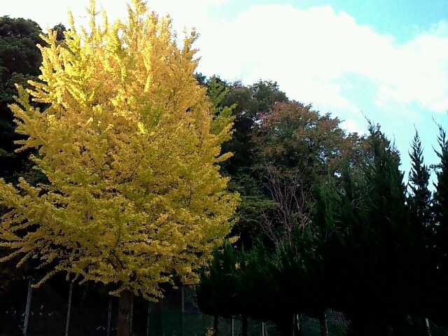 秋、本番!!イチョウの木も黄色に色づきました。