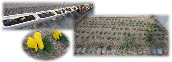 10月頃いただいた種をまいたものがやっとここまで育ちました。プランターは四日市農芸高校が育てた苗を本校高等部環境サービス班が植えたものです。卒業式の会場を飾ります。
