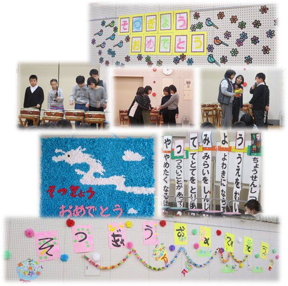 2月23日(金)は小学部のお別れ会がありました。6年生7名の小さかった頃の写真をみんなでみて成長を実感しました。また卒業生による太鼓の演奏、在校生の歌、手作りプレゼント贈呈のあと、お母さんたちへお礼の花束プレゼントをしました。おおきくなりました!小学部6年生、中学部3年生の2月23日現在の残りの登校日数は13日です。