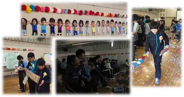 2月16日(金)は中学部の卒業生を祝う会がありました。手作りの心のこもったプレゼントを在校生が3年生に手渡しし、みんなで写真を見て思い出に浸りました。花道では紙ふぶきにお祝いの気持ちを込めました。