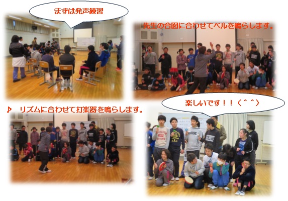 11月21日の中学部音楽の様子です。2つのグループに分かれて取り組んでいますが、その1つでは英語の歌に取り組んでいました。ABCの歌を英語の歌詞で、歌ったりハンドベルや打楽器で演奏したり、みんなで演奏することを楽しんでいました。