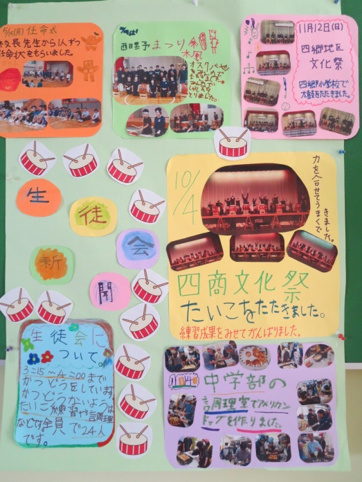 生徒会が今年度取り組んできた活動を自分たちで壁新聞にまとめました。いろんなことがありましたね。