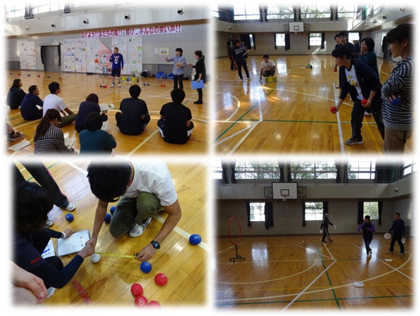 10月23日は台風の影響で1日休校となりましたが、三重県身体障害者総合福祉センターより講師をお招きして職員向けの障害者スポーツ講習を開催しました。受講希望の本校職員16名が集まり、ボッチャとフライングディスクについて実技講習を受けました。シンプルながら奥の深い競技内容やルールに我を忘れて楽しみ盛り上がるひとときでした。今後の授業の中で、いろんな形で取り入れていくことができそうです。