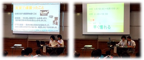 7月13日は高等部現場実習報告会がありました。1学期に実習をした数名が、その様子を写真や映像等を使って高等部全員の前で発表しました。事前によく準備をしていることもあり、なにより実習に手ごたえを感じていることがよくわかる、いい発表でした。友だちに刺激を受け、また、それぞれの次のステップにつなげてほしいと思います。