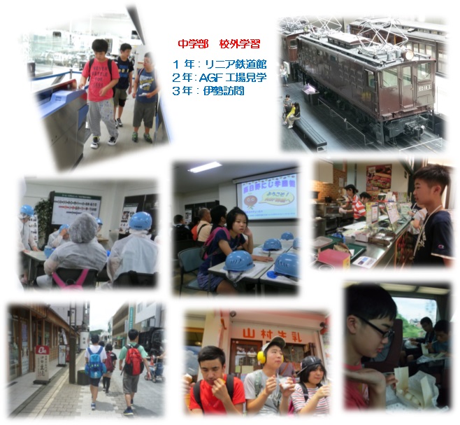 7月14日は中学部の校外学習でした。各学年に分かれて、1年:リニア鉄道館 2年:AGF工場見学 3年:伊勢訪問 に一日かけて出かけました。