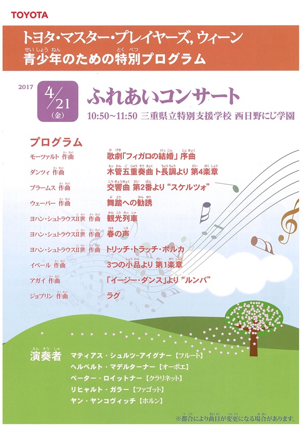 トヨタマスタープレイヤーズの企画で、本校にウィーンフィル他の演奏家5名がやってきます!!