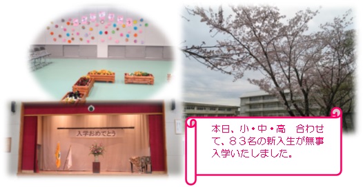 4月10日は平成29年度1学期の始業式と入学式がありました。桜の花も今日まで持ってくれ、本校の門出を祝ってくれているようです。新しいメンバーを迎え、地域の皆様とともにあゆむ学校として気持ちも新たにがんばっていきます。みなさん応援よろしくお願いいたします。