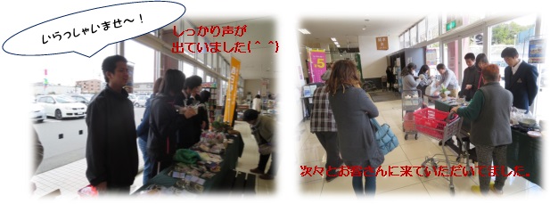 校生徒の知り合いの方などで結構賑わいました。売り上げは1万5千円ほどでした。お買い上げいただ