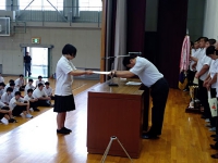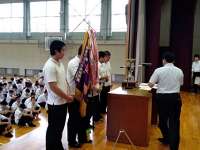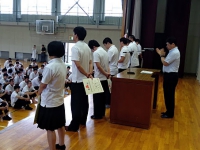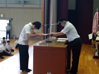 柔道部が東海総合体育大会にて男子団体優勝しました。表彰伝達式において披露されました。