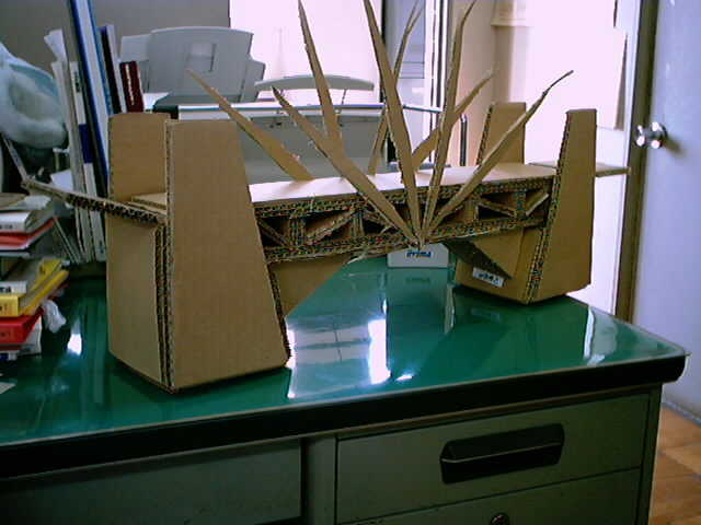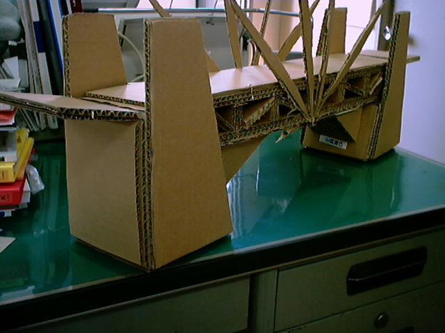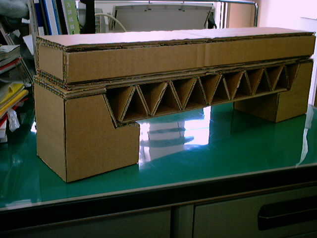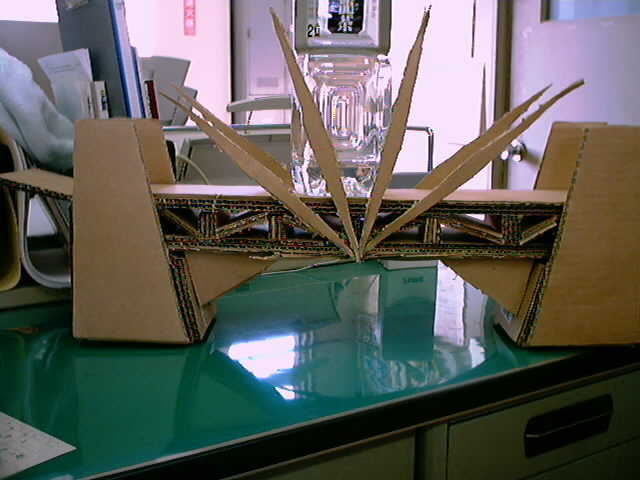 ドリームブリッジは段ボールだけを使用し2lの水が入ったペットボトルの荷重に耐えなければ行けません。強度だけでなくデザイン性も要求されます