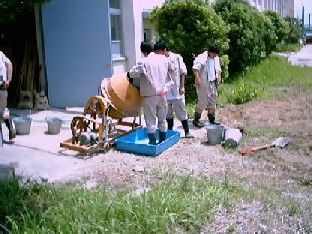 4,コンクリートの打ち込み・・・配合を決めてコンクリートを打ち込みます。