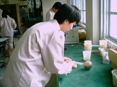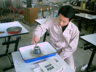 4,450ccの試料をフラスコに入れ水を500ml迄入れる。ゴム板の上で転がし泡を完全に追い出す。その後重量の測定