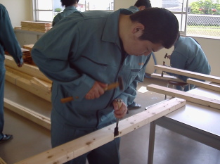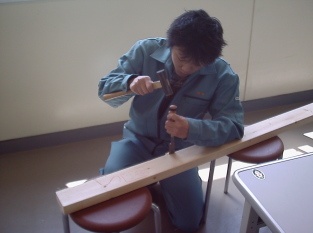 のみと金槌を持つ姿も様になってきました。ものを作っているときの姿は真剣でかっこいい!