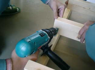 ほぞが切れたら柱を組み合わせてボルトで締め付けます。
