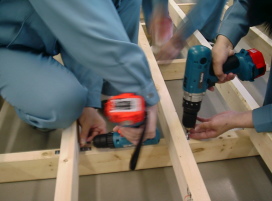 第2工程からの続きです。 差し金を使い直角を保ちつつボルトを締め上げていきます。 部材数が多い分作業量も多くなってきます。