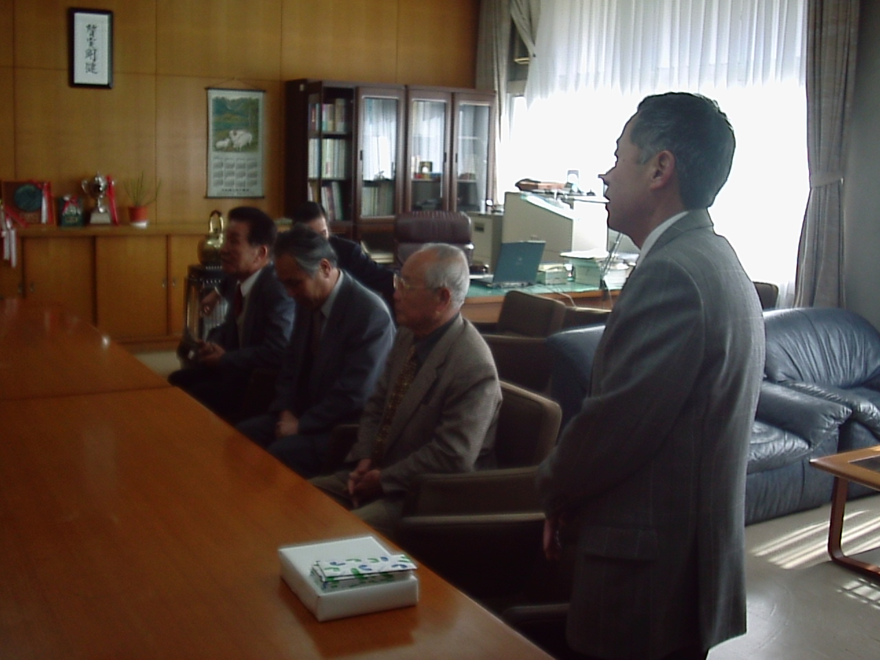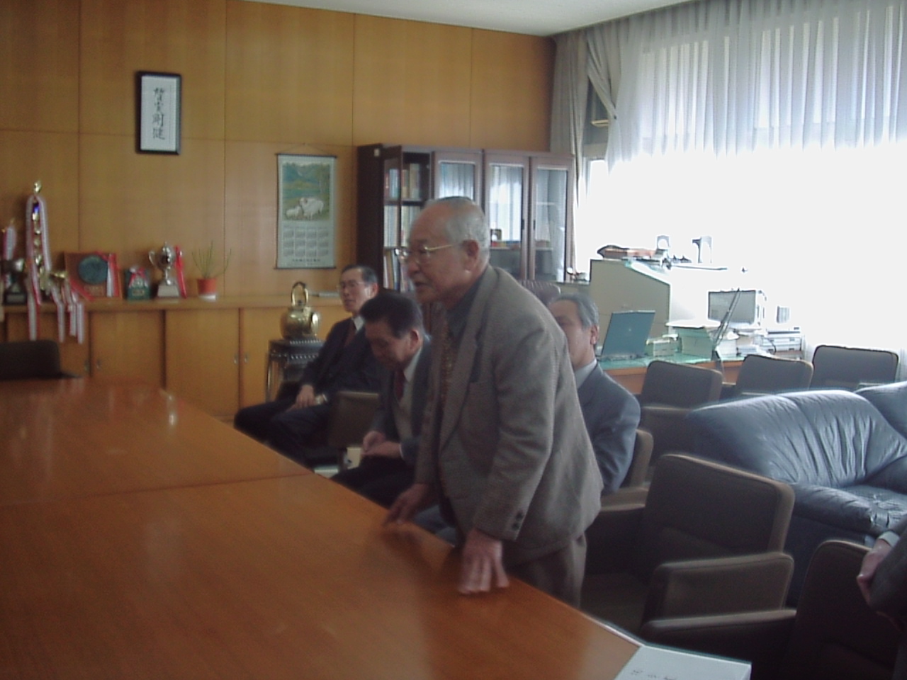 OB会から北村会長・中山事務局長・安川顧問が見えられお祝いの言葉と記念品の贈呈がありました