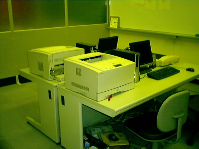 ここは設計実習室の中にあるトータルステーションルームです。このトータルステーションというのは測量から計算製図まで一連の作業を行うことが出来るシステムです。これにより測量における内業の省力化、迅速性、精度が向上出来るわけです。
