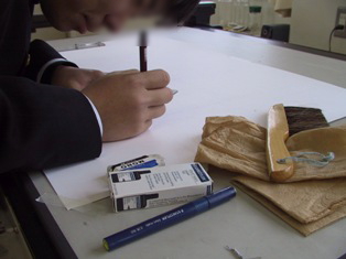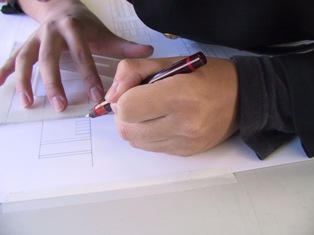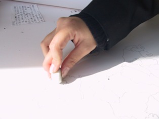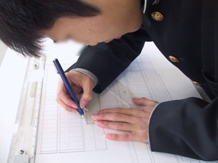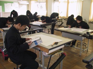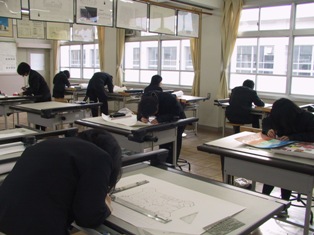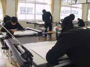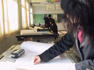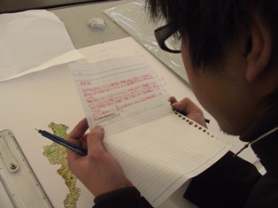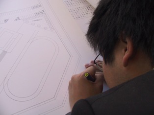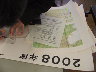 まもなく締め切り。墨入れ中。(H21.1.15)