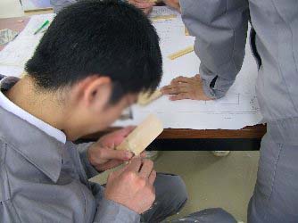 テキスト ボックス: 勾配のある削り加工は根気がいります。